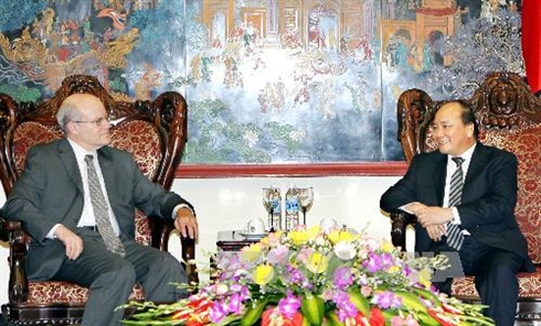 | Rencontre entre le vice-Premier ministre Nguyên Xuân Phuc (droite) et le directeur adjoint de l'USAID, Donald Steinberg, le 7 mai à Hanoi. Photo : An Dang/VNA/CVN |