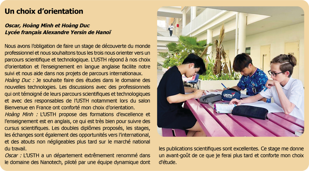 | L’USTH est une université internationale née d’une coopération entre la France et le Vietnam. |