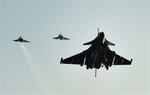 | Rafales français, le 23 novembre 2015, au dessus de la Méditerranée. |