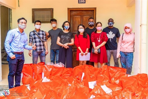 | Remise des dons pour étudiants internationaux pendant le confinement. |