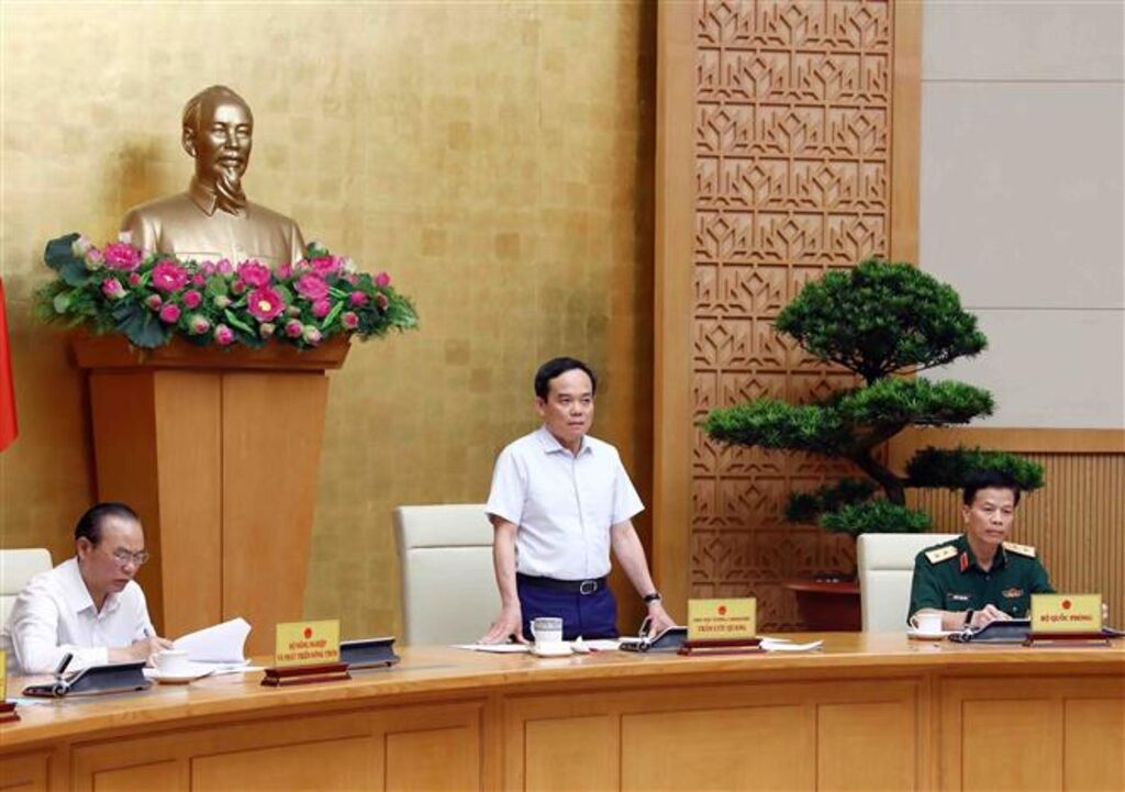 | Le vice-Premier ministre Trân Luu Quang (centre) lors de la 7e réunion du Comité national de pilotage de la lutte contre la pêche INN, le 1er juin à Hanoï. |
