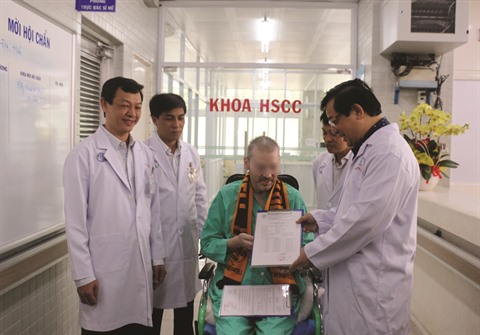 | Le pilote britannique, 91e patient du COVID-19, le malade le plus touché au Vietnam, a quitté l’hôpital le 11 juillet 2020 après une guérison spectaculaire suite à 115 jours de traitement. |