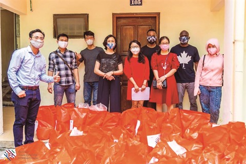 | Remise de dons à des étudiants internationaux au Vietnam pendant la période de distanciation sociale. |
