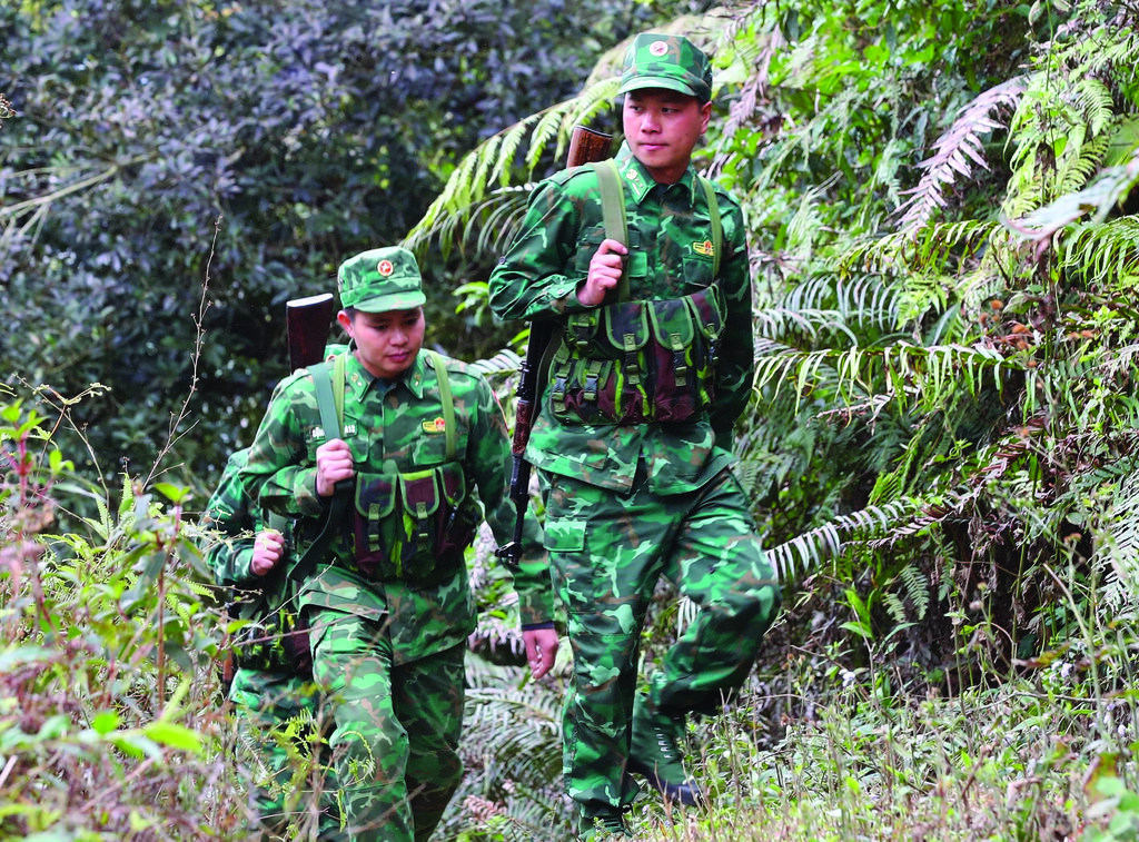 | Membres de la Brigade de prévention et de lutte contre la drogue du poste-frontière de Chiêng On, province de Son La, patrouillant dans les zones frontalières. |