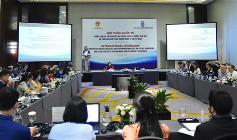 | Vue du séminaire "Lutte contre la violence et la discrimination fondées sur l'orientation sexuelle et l'identité de genre : expériences internationales et vietnamiennes", le 27 mai à Hanoï. |