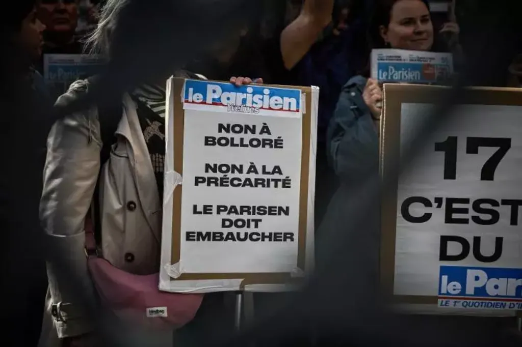 | Des salariés du Parisien s'étaient rassemblés à Paris, le 22 septembre 2025, devant leur siège pour protester contre la rumeur de vente du quotidien au groupe de médias Bolloré. |