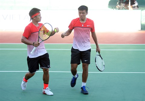 | Ly Hoàng Nam (droite) et Nguyên Hoàng Thiên se sont qualifiés pour le 2e tour du Challenger Vietnam Open 2016, en double messieurs. |