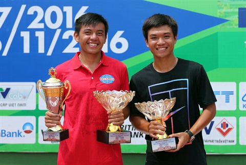 | Ly Hoàng Nam (gauche) a fait un coup double lors du tournoi de tennis international Men’s Future F5, disputé récemment à Binh Duong (Sud). |
