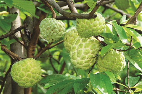 | La ferme de Ly Van Dang dispose de 4 ha de terres consacrées aux pamplemoussiers, pommiers cannelle et cannas comestibles. |