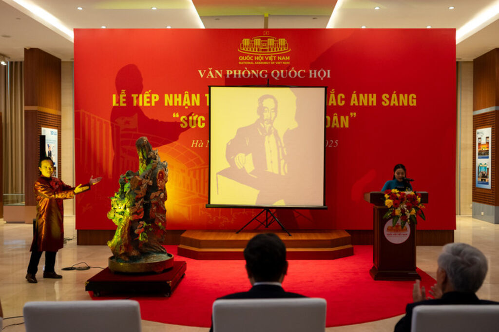 Le 15 novembre après-midi, au siège de l’Assemblée nationale (AN) à Hanoï, le président de l’AN, Trân Thanh Mân, a assisté à la cérémonie de réception de l’œuvre artistique de sculpture d'ombre et de lumière intitulée "La force de la volonté du peuple", offerte au Musée de l’AN par l’artiste Bùi Van Tu.