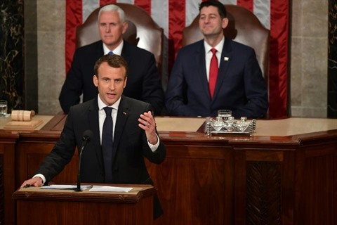 "C'est un honneur pour la France, pour le peuple français et pour moi d'être reçu dans ce sanctuaire de la démocratie, où tant de l'histoire des États-Unis s'est écrite", a-t-il lancé d'emblée, en anglais, après avoir été accueilli par une bruyante standing ovation des élus de plus de trois minutes à son arrivée dans l'hémicycle, certains d'entre eux criant "Vive la France!". Son épouse Brigitte, arrivée quelques minutes auparavant, avait également été applaudie debout par les parlementaires.