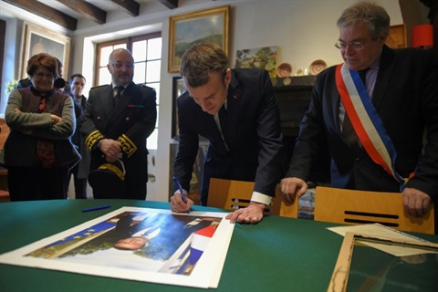 | Le chef de l'État signe son portrait officiel dans la mairie de Gargilesse-Dampierre, le 14 février. |
