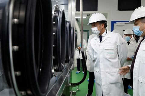 Emmanuel Macron avait auparavant inauguré un atelier de production sur ce site "d'exception" qui est l'une des plus anciennes usines de principes actifs du monde (nécessaires pour fabriquer des médicaments).