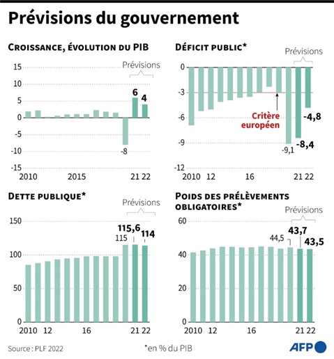 | Principaux indicateurs économiques, prévisions du gouvernement pour 2021 et 2022. |