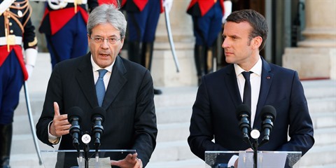 | Le président français Emmanuel Macron (droite) et le Premier ministre italien Paolo Gentiloni, le 21 mai |