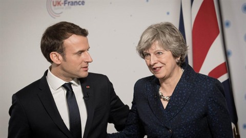 | Emmanuel Macron et Theresa May lors d'une conférence de presse, le 18 janvier à Sandhurst, au sud de Londres |