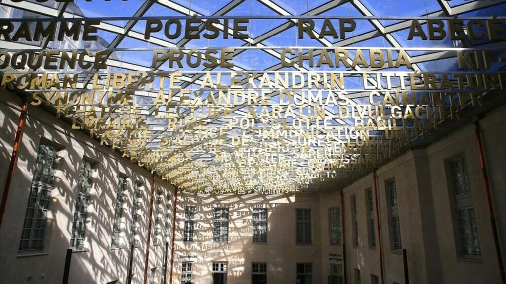 | Le "ciel lexical" de la cour de la Cité internationale de la langue française à Villers-Cotterêts (Aisne) le 11 octobre. |