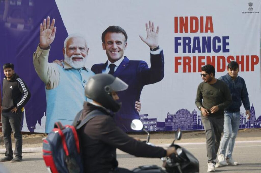 Narendra Modi, qui avait été l'invité d'honneur pour le défilé militaire du 14 juillet à Paris, lui rend la pareille six mois plus tard alors que le partenariat industriel et militaire s'intensifie entre les deux pays.