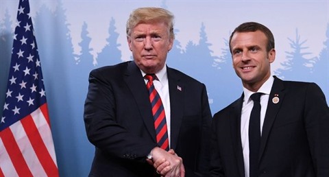 | Rencontre bilatérale au G7 entre Donald Trump (gauche) et Emmanuel Macron sur fond de tensions. |