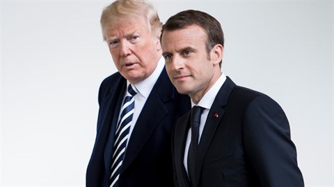| Le président américain Donald Trump et son homologue français Emmanuel Macron (droite). |