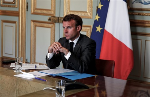 | Le président français Emmanuel Macron, le 18 mai 2020 à l'Élysée à Paris. |
