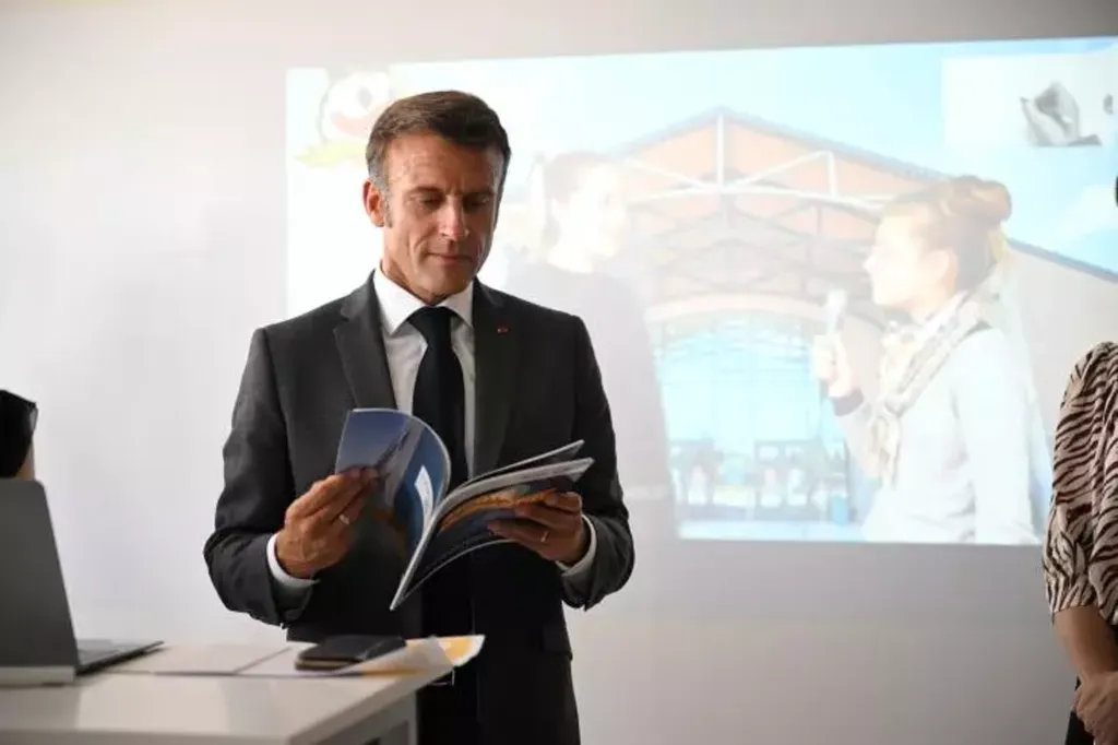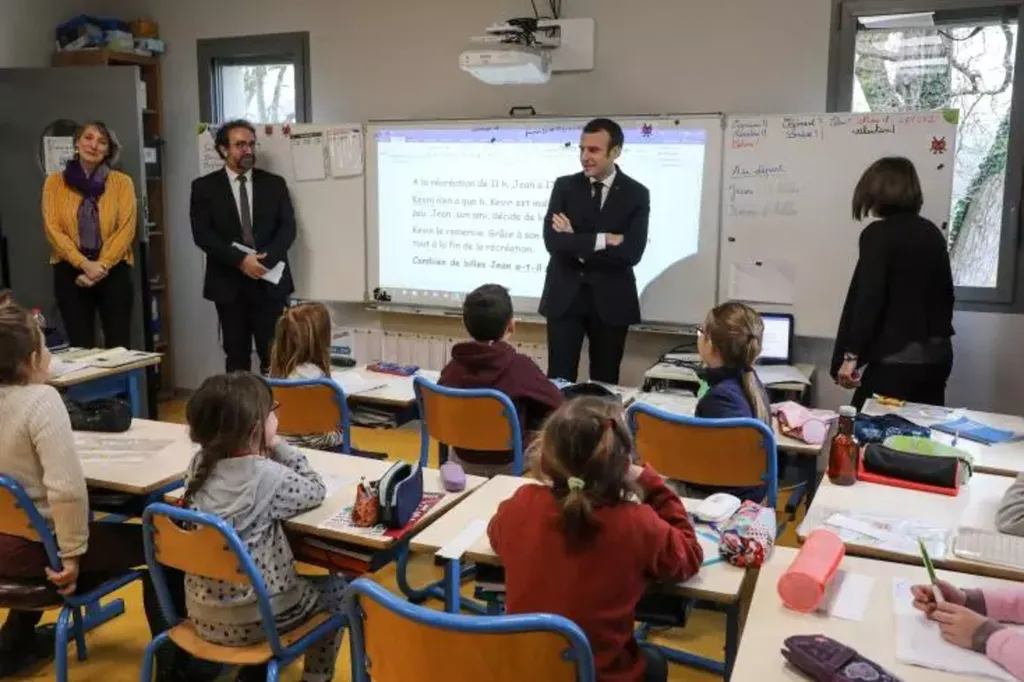 | Le président Emmanuel Macron visite un collège à Orthez, le 5 septembre 2023. |