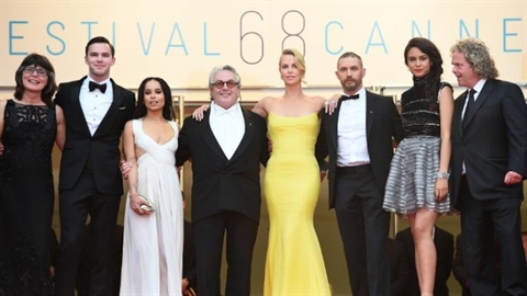 | L'équipe du film "Mad Max : Fury Road" lors de la montée des marches du Festival de Cannes, le 14 mai |