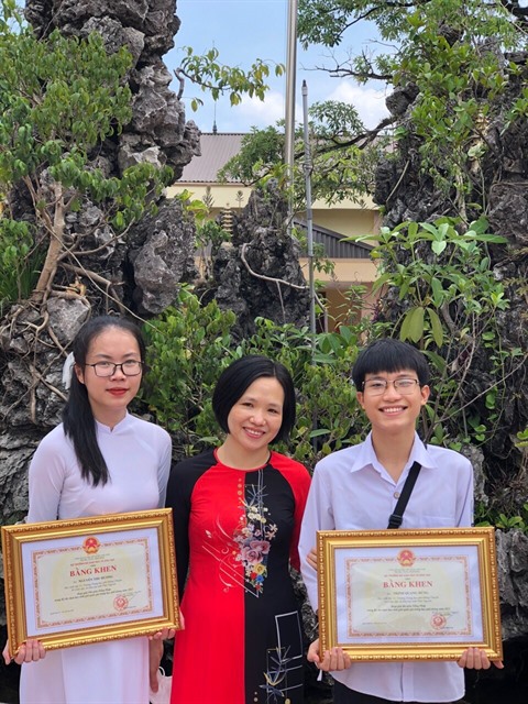 | Mme Thu avec Thu Huong (à gauche), qui a remporté deux deuxièmes prix nationaux. |
