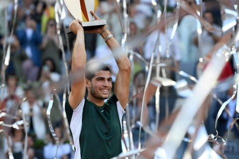 | L'Espagnol Carlos Alcaraz vainqueur du tournoi de Madrid, le 8 mai. |