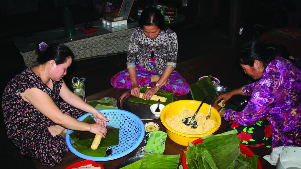 | Une famille dans la province de Hâu Giang (delta du Mékong) prépare des banh tet. |