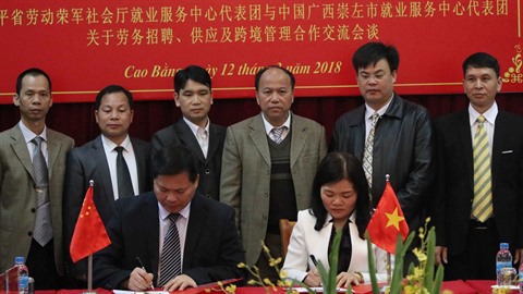 En vertu d'un protocole d'accord sur la coopération transfrontalière et le recrutement de main-d’œuvre, qui a été signé à Cao Bang lundi 12 mars, à la suite de l’entretien entre les responsables des deux centres de la province de Cao Bang (Nord) et de la ville frontalière de Chongzuo dans la région autonome des Zhuangs du Guangxi, les deux parties partageront régulièrement des informations et des réglementations sur les contrats de travail.