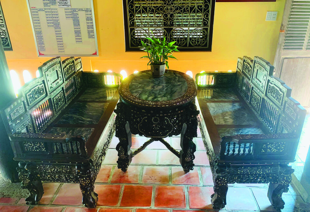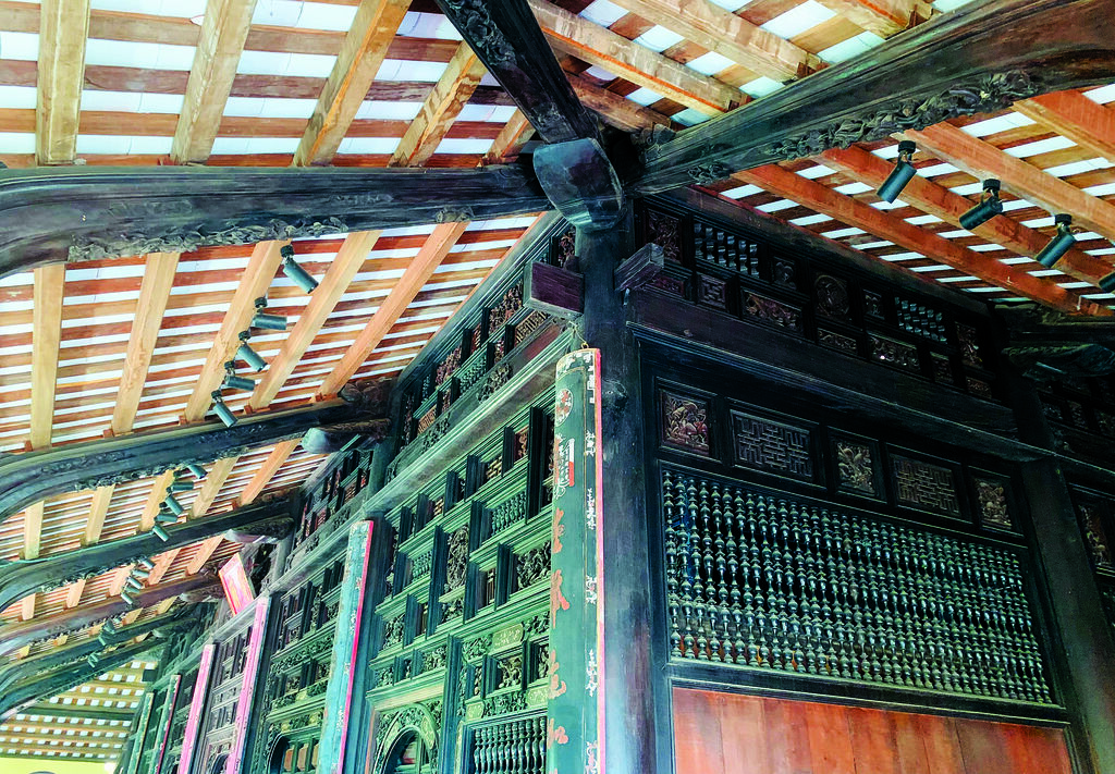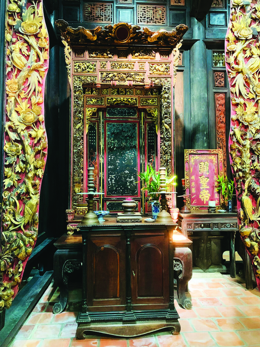 Selon Mme Hai, à l’intérieur de la maison se trouve un ensemble de canapés incrustés de nacre, importés de France qui, en 1980, étaient proposés à la vente pour 40 taëls d’or, mais que le propriétaire n’a jamais vendus. On y trouve également de nombreux comptoirs, lits en bois et urnes en bronze, soigneusement préservés au fil des générations. D’après Mme Hai, ce que les touristes apprécient le plus lors de leur visite, ce sont des peintures de vénération en bois, décorées d’images d’animaux et de branches de fleurs, et soigneusement fixées aux précieux piliers. Toutefois, avec le temps et les événements historiques, plusieurs antiquités précieuses de la maison ont malheureusement été perdues.