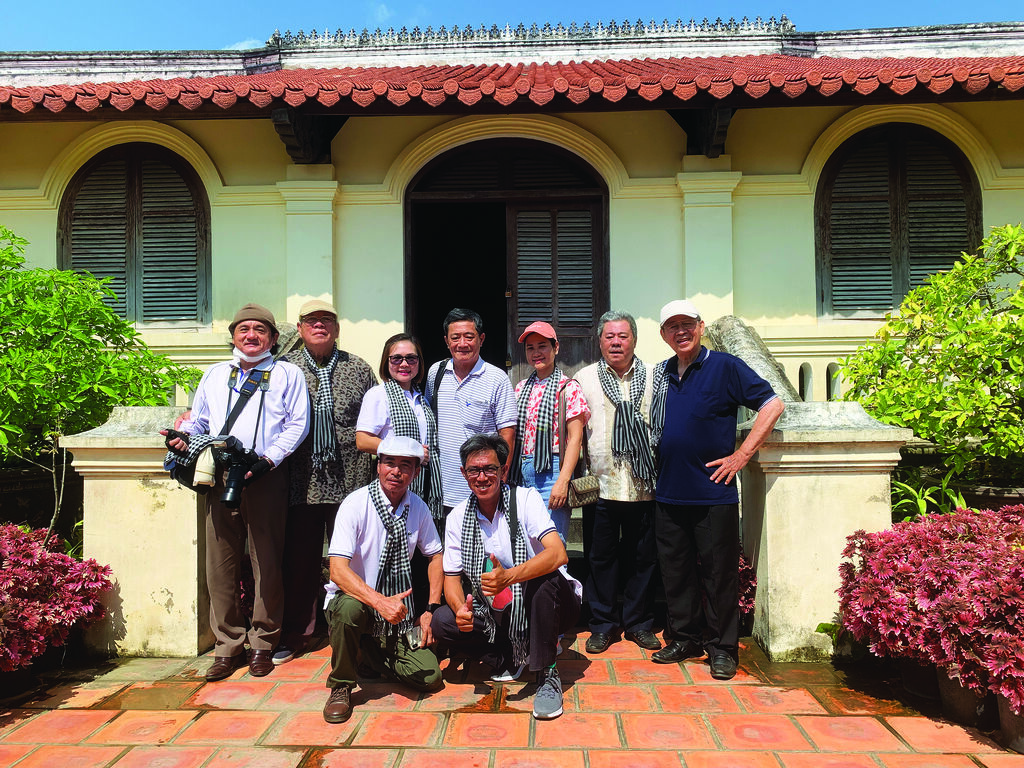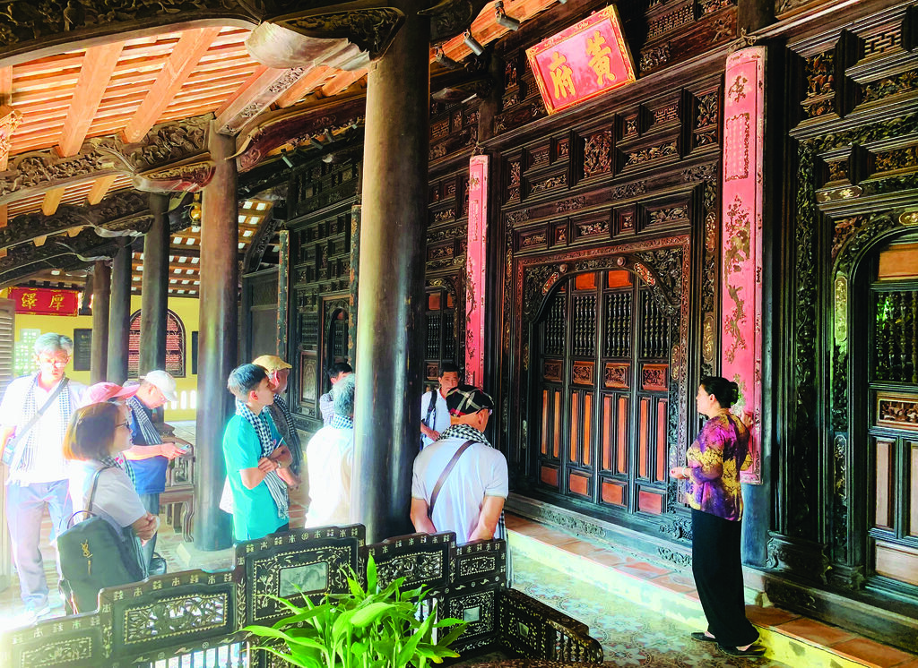 | Un groupe de touristes à l’ancienne maison de Huynh Phu. |