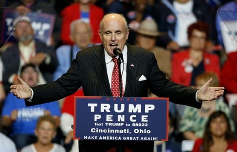 | L'ex-maire de New York, Rudy Giuliani, fidèle soutien de Donald Trump, le 13 octobre lors d'un meeting de campagne dans l'Ohio. |