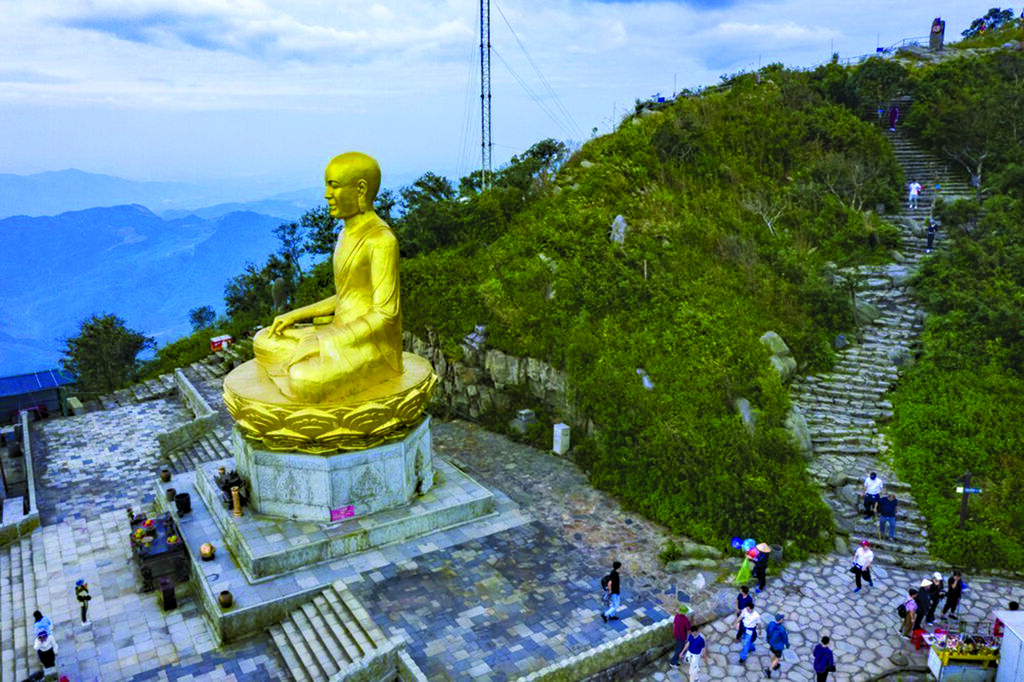 | La statue du roi-moine Trân Nhân Tông, fondue d’un seul bloc de bronze, s’élève à 15 m et pèse 138 tonnes. |