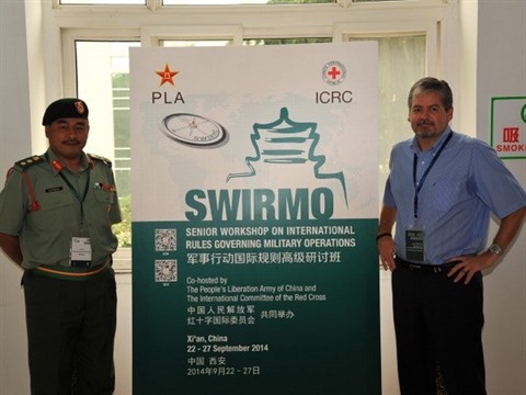 | Le délégué du CIRC aux forces armées et de sécurité en Asie du Sud-Est et au Pacifique, Kirby Abbott (droite). |