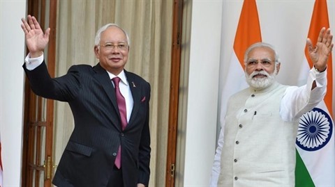 | Le Premier ministre malaisien Najib Razak (gauche) et son homologue indien Narendra Modi. |