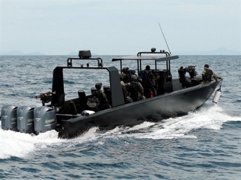 | Patrouille d'un hors-bord de la garde-côte malaisienne. |