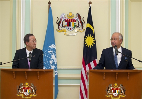 Lors d'une conférence de presse commune avec le Premier ministre Mohd Najib ibn Tun Haji Abdul Razak, le secrétaire général de l'ONU a salué les efforts de la Malaisie pour préserver l'unité nationale tout en respectant la diversité de la population.