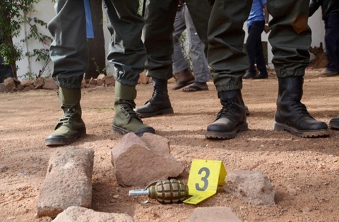 | Une grenade retrouvée sur les lieux de l'attaque terroriste d'un restaurant "La Terrasse" à Bamako le 7 mars. |