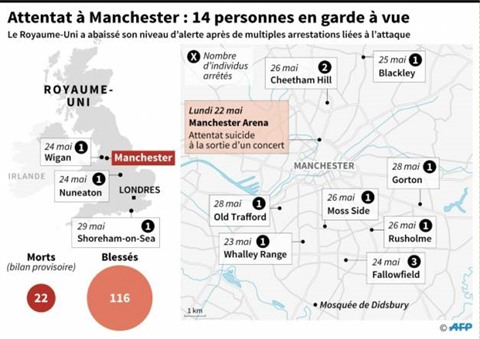 >>Manchester : nouvelle arrestation, 14 personnes en garde à vue