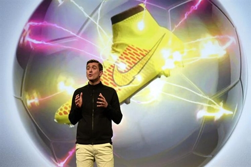 | Le vice-président de Nike, Phil McCartney, présente la nouvelle chaussure de sport "Magista" à Barcelone, le 6 mars. Photo : AFP/VNA/CVN |