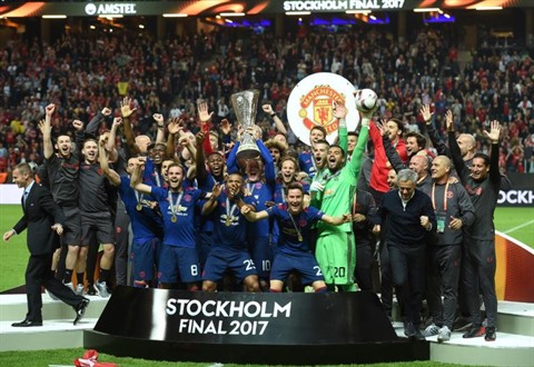 | Manchester United, vainqueur de l'Europa League face à l'Ajax d'Amsterdam, le 24 mai 2017 à Stockholm. |