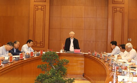 | Le secrétaire général du Parti et président de la République, Nguyên Phu Trong, préside une réunion sur la lutte contre la corruption, à Hanoï. |