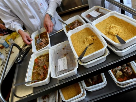 | De la nourriture est servie dans une cantine à Bordeaux. |