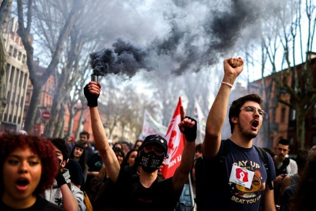 | Des manifestants lors d'une mobilisation contre la réforme des retraites, le 9 mars à Toulouse. |