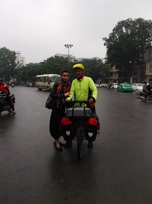 Marc Delval a traversé la Chine avant d’arriver au Vietnam, où il a visité Hanoi, Ha Long, Hoa Binh, Diên Biên Phu et Sa Pa. Bien sûr, tous ces itinéraires sont parcourus en vélo. «Au Vietnam, j’ai l’impression que tout le monde me connaît. Je suis surpris de voir le nombre de gens, de jeunes, de petits enfants, de personnes âgées, qui me disent +Hello !+. On m’invite à boire le thé, une bière. De temps en temps, on m’invite à rester avec eux pour le repas. Comme ce très bel accueil à Hanoi. Je suis arrivé chez des amis que j’ai rencontrés en France. Ils m’ont réservé un accueil extraordinaire !», m’a-t-il dit, très ému.