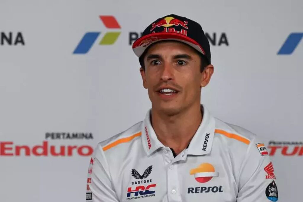 | L'Espagnol Marc Marquez lors d'une conférence de presse avant le Grand Prix d'Indonésie, comptant pour le Championnat MotoGP 2023 le 12 octobre à Kuta Mandalika. |