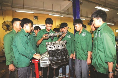 | Un cours de technologie automobile à l’École de formation professionnelle de Hà Tinh (Centre). |