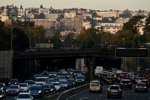 | Des bouchons sur le périphérique parisien au niveau de la Porte de la Muette, le 6 novembre. |